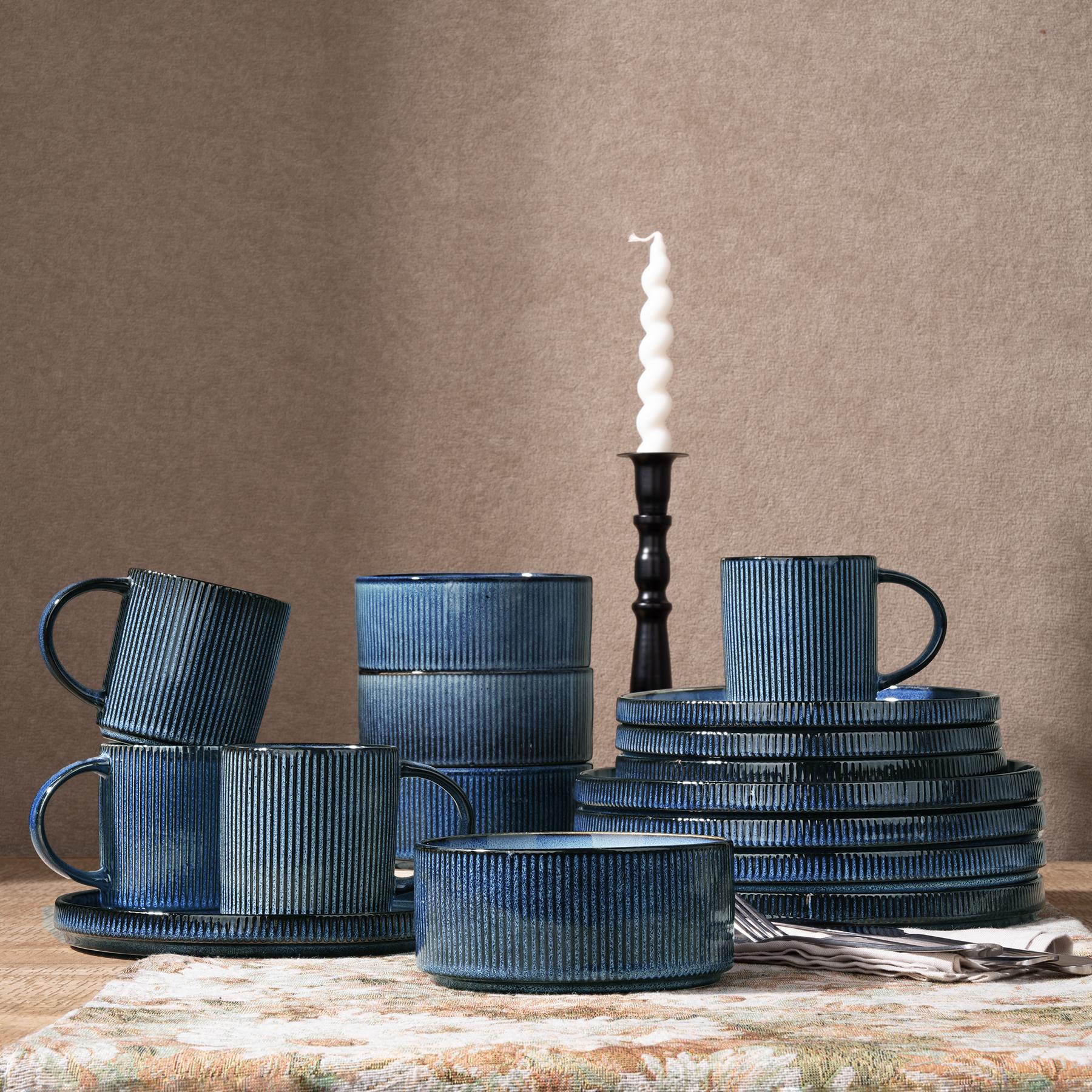Richmount Tempus Plates and Bowls Sets for 6, 18 Pieces Stoneware Dinner Set, Reactive Glaze Dinnerware Set, Dishwasher & Microwave Safe
