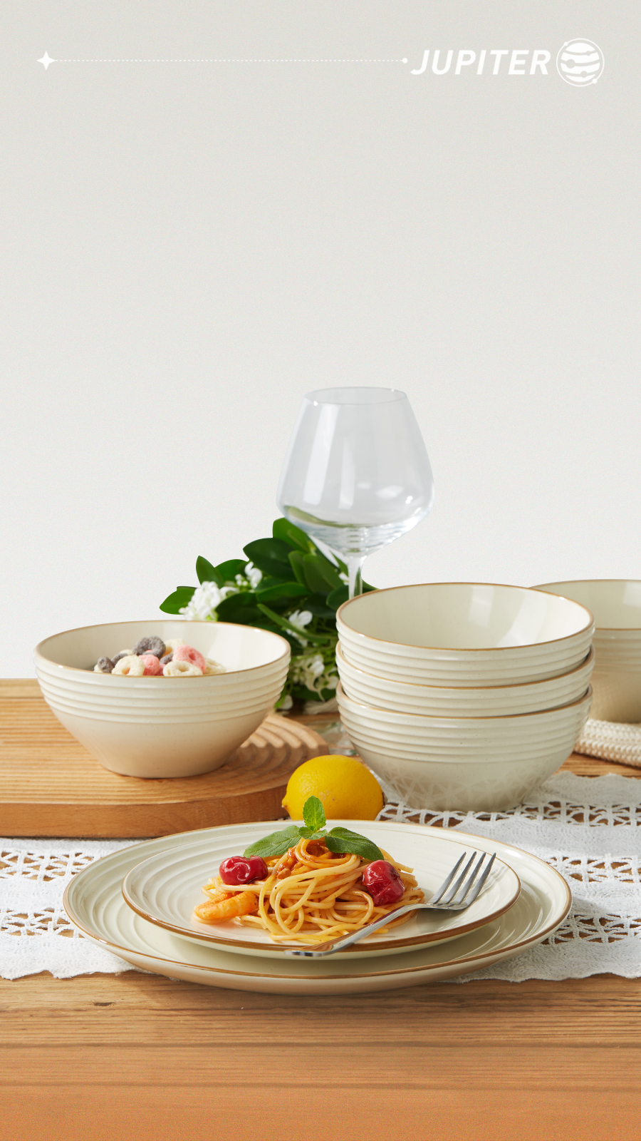 Richmount Jupiter Plates and Bowls Set, 12 Piece Dinner Set for 4, Scratch Resistant Dinner Set, Stoneware dinnerware sets with 4-Piece Dinner Plates, Dessert Plates and Bowls