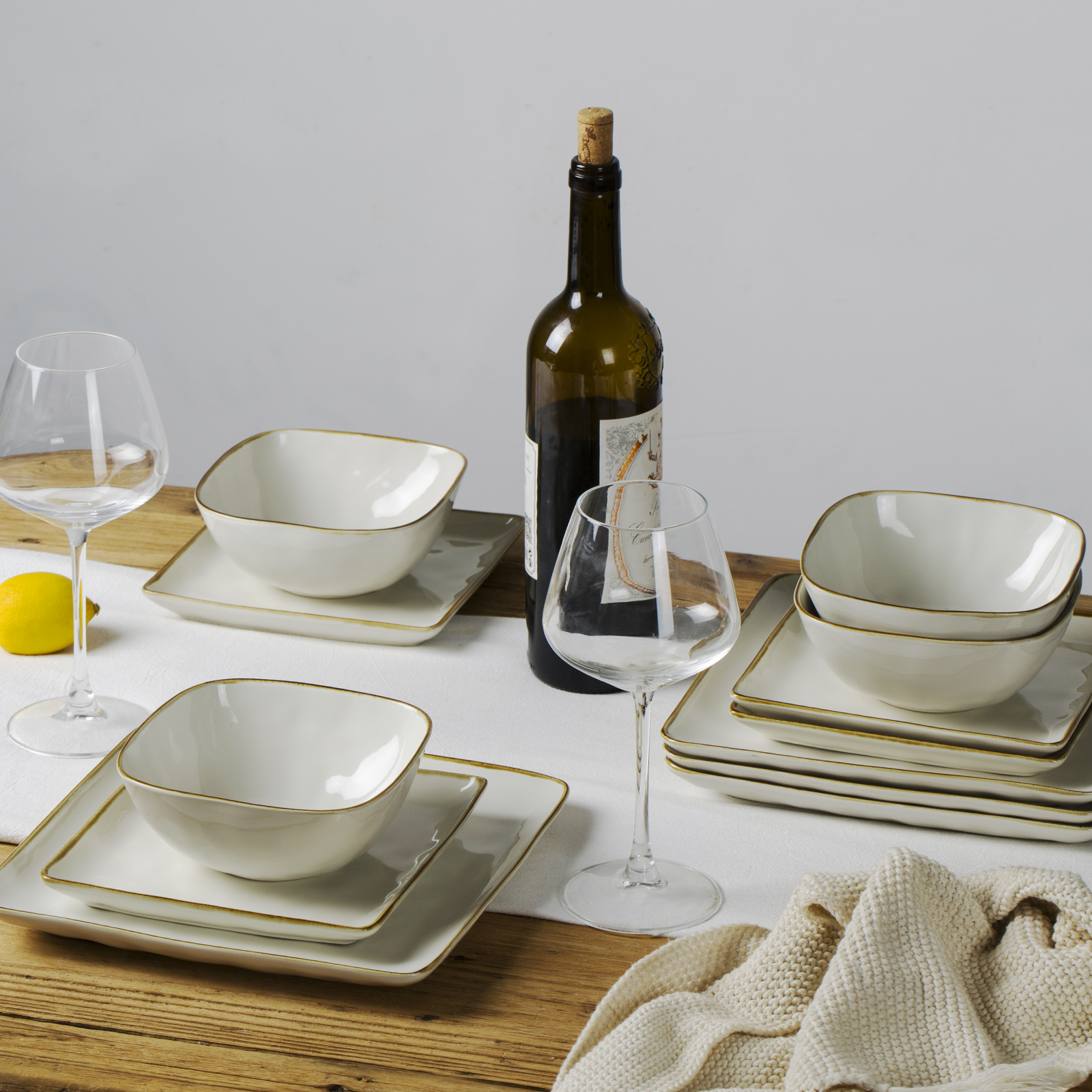- 18 Piece set(6*24.8cm dinner plates, 6*18.4cm salad plates, 6*15.2cm cereal bowls)